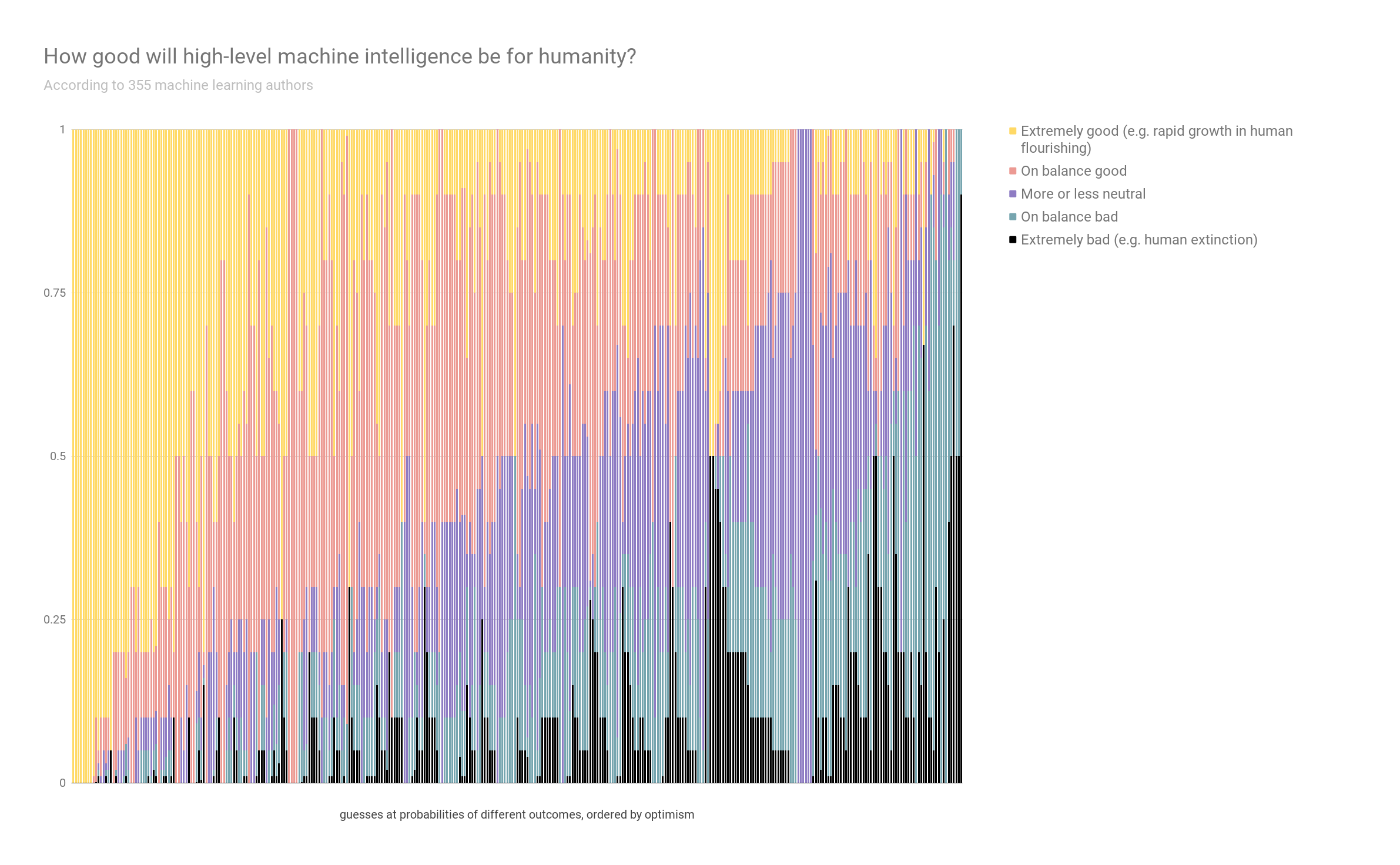 Our survey offers some new evidence on these questions. Here, 355 machine learning researchers weigh in on how good or bad they expect the results of 'high-level machine intelligence' to be for humanity: