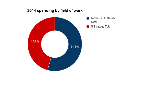 Measures other than funding also matter, and may matter more, like types of outputs, distribution of employed/active people, or impact-adjusted distributions of either. Funding, however, is a little more objective and easier to assess. It gives us some sense of how the AI Safety community is prioritising, and where it might have blind spots. For a fuller discussion of the shortcomings of this type of analysis, and of this data, see section four. Throughout, I am including the budgets of organisations who are explicitly working to reduce existential risk from machine superintelligence. It does not include work outside the AI Safety community, on areas like verification and control, that might prove relevant. This kind of work, which happens in mainstream computer science research, is much harder to assess for relevance and to get budget data for. I am trying as much as possible to count money spent at the time of the work, rather than the time at which a grant is announced or money is set aside. Thanks to Niel Bowerman, Ryan Carey, Andrew Critch, Daniel Dewey, Viktoriya Krakovna, Peter McIntyre, Michael Page for their comments or help on content or gathering data in preparing this document (though nothing here should be taken as a statement of their views and any errors are mine). The post is organised as follows: